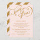 REMARQUE : Il s'agit d'une image imprimée à plat, il n'y a pas de parties scintillant réelle, d'encre métallique or ou de couches. PALETTE DE COULEUR : Style métallique or et coquillages rose coquillages COLLECTION : Un menu de réception de mariage formel pour dîner listant les choix d'entrée et le dessert. Créée à l'aide de la calligraphie manuscrite de défilement par Audrey Jeanne Roberts. Le texte dit "pour toujours dans l'amour" et a défilement fleurit pour ajouter une touche d'élégance moderne. Au verso est une large bande diagonale également en étincelle dorée. Le libellé personnalisé de votre invitation peut facilement être customisé avec les champs de modèle simples fournis. Disponible en parties scintillant argent et or avec n'importe quel arrière - plan couleur. Contactez-nous et nous vous indiquerons la couleur de votre mariage.
