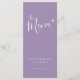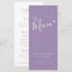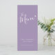 Texte de calligraphie simple et moderne, texte violet et blanc atténué, menus de dîner de mariage ou menu d'événement spécial. Modifiez ce menu de 4 plats avec vos propres mots. Simple mais moderne avec un petit menu cœur blanc. Idéal pour un mariage simple de ton violet ou un événement sur le thème moderne du cœur. © Conception www.mylittleedenweddings.com sur zazzle.