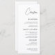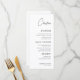 Menu blanc minimaliste avec un nom d'hôte de script personnalisé, conçu pour servir à la fois de carte d'endroit et de guide de repas. Parfait pour les mariages, les dîners de répétition, les douches nuptiales ou les fiançailles, cette carte polyvalente allie personnalisation et élégance moderne. La disposition en noir et blanc et la typographie chic créent un détail intemporel et élégant qui améliore les réglages de table pour toute célébration sophistiquée.