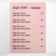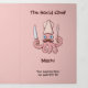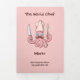 Caricature du chef calmar rose avec moustache tenant couteau et fourche à cuisine. Couleur arrière - plan personnalisée. Texte personnalisé.