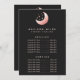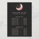 Rose Celestial Gold Crescent Moon Service Menu Prix. Cet élégant design d'affaires moderne et branché présente une lune et des étoiles sur un arrière - plan noir solide.