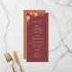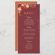 Menu chic mariage à fleurs orange terre cuite d'automne. Améliorez votre paysage de table mariage de automne avec ce menu mariage d'automne chic, avec des fleurs élégantes d'orange et de terre cuite. Les tons chauds et rustiques créent un look sophistiqué et accueillant, parfait pour une fête de saison. Élégant et fonctionnel, ce menu présente avec soin votre repas soigneusement préparé, ajoutant une touche de charme à votre réception.