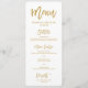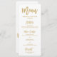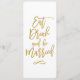 Menu mariage or élégant avec des polices de caractères modernes et dit "Mange, Bois et Etre Marié" sur le dos.
