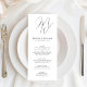 Menu Chic Monogramme Initiales Mariage noir blanc