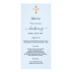 Carte de menu Christening réception. Personnalisez et ajoutez un nom, une date et le menu. Un arrière - plan léger, du texte noir. Une fausse croix d'or.
