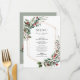 This chic and modern menu card features a delicate gold geometric frame encircling a lush watercolor wreath adorned with vibrant red berries, and winter greenery. Click the "customize further" button if you wish to re-arrange and format the style and placement of the text.