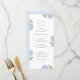 This beautiful design features blue hydrangea blooms and your custom text. Use the template form to add your information. The Design Tool can be used to access the advanced editing menu where you can change the font, colors and layout of the text, or add text to the back of the menu.