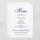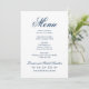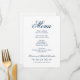 La carte de menu officielle marine bleue mariage est dotée d'une belle typographie qui combine un script de calligraphie fleuri traditionnel avec du lettrage en bloc classique. Comprend un accent décoratif design de défilement. Le texte personnalisé peut être personnalisé avec un monogramme des noms de mariée et de mariée et la date du mariage ainsi que les détails du menu du dîner pour le jour du mariage. Veuillez acheter notre collection Classic Elegant Navy Blue Mariage Collection pour la coordination des conceptions.