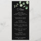 Ce menu minimaliste classique à l'eucalyptus noir mariage est parfait pour accompagner un mariage rustique. Le design comporte une belle police calligraphique et un eucalyptus vert aquarelle dans un arrière - plan noir.