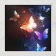 Night glowing butterflies on a dark abstract background. Du beurre noir. Design avec du beurre.