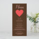 Ce menu de réception de mariage propose un joli menu de réception de mariage rose et marron. Avec "Menu" en haut avec une police rose cursive, toutes vos informations sont imprimées en police rose lisible sur un arrière - plan marron. Customisez comme vous le souhaitez. Coeur : Clipart : AMBillustrations http://www.etsy.com/shop/AMBillustrations/