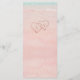 Plage de sable rose romantique à l'eau turquoise, également deux coeurs dans le sable et les initiales de la mariée et du marié sur le dos, cartes grand menu pour mariage de plage rose ou mariage de destination comme plages de sable rose aux Bermudes, Bahamas, Grèce, Barbade etc.