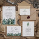 pin, pinède, aquarelle, rustique, bois, arbres à feuillage persistant, hiver, forêt, vert et blanc, menu mariage
