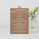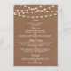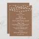 Simple mais élégant, les lampes à cordes de la collection rustique Kraft mariage est un design époustouflant avec de belles lumières à cordes blanches suspendues sur un arrière - plan à effet Kraft, qui est parfait pour toute célébration mariage rustique. Ces cartes de menu peuvent être personnalisées pour votre occasion spéciale et feraient le menu parfait pour votre mariage, douche nuptiale, fête de fiançailles, fête d'anniversaire et bien d'autres occasions spéciales. Ajoutez votre libellé personnalisé à cette conception à l'aide des cases "Modifier ce modèle de conception" situées à droite de l'élément, ou cliquez sur le bouton bleu "Customiser" pour arranger le texte, modifier les polices et les couleurs et ajouter des informations ou des images supplémentaires à cette conception. AFFICHER LES ÉLÉMENTS CORRESPONDANTS POUR CETTE COLLECTION