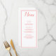 Menu classique corail et blanc, ce menu de réception de mariage dispose d'un bel arrière - plan blanc avec une police de corail. Avec "Menu" en haut avec une police de corail cursive, toutes vos informations sont imprimées dans une police de corail élégante sur un arrière - plan blanc. Customisez comme vous le souhaitez.