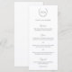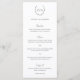 Menu de mariage traditionnel et classique noir et blanc avec un blason de mariage comportant votre monogramme à l'intérieur d'une couronne ainsi que les en-têtes en écriture / calligraphie. Ces menus de mariage simples mais élégants sont parfaits pour un mariage formel.