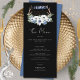 Fleurs de cristaux de lune Boho Metaphysical Mariage Menu avec arrière - plan noir. Cet ensemble de faire-part de mariage Boho comprend un croissant d'aquarelle et des phases de pleine lune avec des fleurs blanches et bleues, des points de cristal d'or, de la verdure et des bois. Un choix parfait pour une union spirituelle mystique ou métaphysique, un jeûne à la main ou un mariage. Les couleurs et les polices Arrière - plans peuvent facilement être modifiées pour répondre à vos besoins.