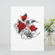 Contour, lune de croissant mécanique avec des engrenages, décoré de roses rouges avec des tiges noires spirées et feuilles sur arrière - plan blanc. Steampunk