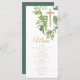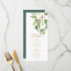 Vert Croix botanique florale Elégant Baptism Menu comprend une croix blanche sur des feuilles d'eucalyptus peints à la main verte et verdure avec votre menu ci-dessous. Personnalisez en modifiant le texte dans les zones de texte fournies. Conçu par ©2022 Evco Studio www.zazzle.com/store/evcostudio