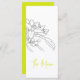 Monotone mariage dessin simple moderne avec menu vert citron. Parfait pour un mariage simple et moderne. Personnalisez ce menu mariage fleuri avec vos propres détails de repas de quatre plats. Autres articles correspondants disponibles. Dessin botanique orangé par Sarah Trett pour www.mylittleedenweddings.com