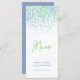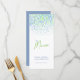 Un menu de dîner mariage peint ou un menu d'évènements spéciaux est décoré dans des tableaux d'art moderne. Modifiez ce menu de 4 plats avec vos propres mots. Menu d'aquarelle simple mais moderne. Idéal pour les mariages bleus verts ou les événements. © Design et peinture originale aquarelle par www.mylittleedenweddings.com sur zazzle.