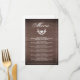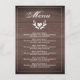 Menu d'accueil de mariage en bois marron rustique avec logo de coeur de cerfs. Modèle élégant pour une soirée de mariage classe. Vintage panneau en bois texture arrière - plan avec typographie stylée. Modèles personnalisables pour les couples qui se marient. Partie d'un bel ensemble de correspondances.