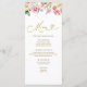 Menu de Baby Shower Mariage Fleur en Fleur, Carte de Menu de Baby Shower Mariage Floral de Printemps, Menu de Baby Shower Mariage Fleurs Sauvages, Menu Nourriture et Boissons.