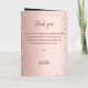 Un fond dégradé or rose faux avec des diamants roses. Le nom est écrit avec un style de lettrage à la main de couleur or rose foncé moderne. Le numéro 90 est écrit avec une police de style ballon, script. Texte de bienvenue, photo, menu et un mot de remerciement au verso.