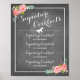 Menu de boissons signatures sur tableau noir avec des roses à l'aquarelle rouge et un motif de cheval.