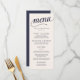 Placez ces élégantes cartes de menu à chaque endroit pour une touche de beauté à votre configuration de l'événement. Le design chic comprend un en-tête de calligraphie moderne sur un arrière - plan en ivoire crème avec des lettres bleu marine de minuit. Utilisez les champs modèle pour ajouter les informations de votre menu, puis cliquez sur "Customiser" pour repositionner les éléments si nécessaire. Vous avez besoin d'aide ? Contactez-moi via le lien "Demandez à ce concepteur" sur cette page.