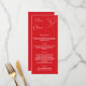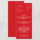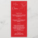 carte de menu de dîner de fête de Noël. Personnalisez et ajoutez un nom/événement, date et le menu. Un fond rouge, texte blanc. Décoré avec un renne moderne abstrait. Texte : Joyeux Noël