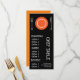 Un modèle de menu moderne et élégant pour un restaurant de cuisine moderne ou une soirée à thème foodie. Ce menu mignon a une illustration adorable d'une assiette orange avec des couverts sur un fond personnalisable noir. Le texte peut être personnalisé pour répondre à vos besoins.