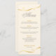 Carte de menu de dîner de mariage avec un design à tourbillon doré.