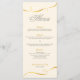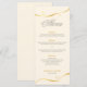Carte de menu de dîner de mariage avec un design à tourbillons dorés.