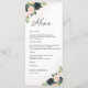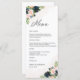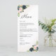 Menu de la cérémonie de Mariage Floral Marine & Blush Pink. Cette invitation à la douche de mariage élégante et élégante présente de magnifiques peintures à la main Navy & Blush Pink Floral. Trouvez les articles correspondants dans la collection Florale Marine & Blush Pink.