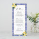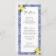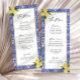 4x9" Amalfi Italien Carrelage Bleu Menu Cette Fête des mariées de citron méditerranéen propose une pièce en carreaux bleu foncé et jaune peint à la main unique avec des citrons d'aquarelle ! Avec l'accent de la typographie moderne, ce thème français inspiré de la Côte Amalfitaine est parfait pour toutes les saisons !