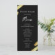 Menu abstrait noir et or. Faux feuillet d'or. Police de caractères script mise en valeur avec une police de caractères serif facile à lire. Facile à ajuster pour vos propres besoins de mariage. Créez votre propre menu, utilisez votre propre texte pour créer un menu d'événement élégant mais bon marché et abordable. Facile à personnaliser. Feuilles de papier de menu personnalisées.