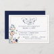 Magnifique carte de réponse de mariage sur le thème nautique, côtier ou de plage avec une ancre ornée de fleurs aquarellées dans des tons de bleu marine, pêche, bleu clair et blanc, encadrée d'une bordure dorée champagne et d'une typographie calligraphiée élégante. Le design comprend votre texte personnalisé pour inclure les sélections de menu ou d'autres détails ou informations. ASSISTANCE : Pour obtenir de l'aide concernant la modification ou la personnalisation du design, le changement de couleur, le transfert du design sur un autre produit ou si vous souhaitez des articles coordonnés, contactez le designer AVANT DE COMMANDER via l'onglet MESSAGE de discussion Zazzle ou par courriel à makeitaboutyoustore@gmail.com.