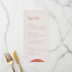 Ce magnifique menu est parfait pour votre mariage imminent. Le design moderne et épuré n'attend que les touches finales de votre délicieux menu. Ce design s'intègre parfaitement dans la collection de mariage moderne Terracotta Leaves ; assurez-vous de la consulter pour les invitations, les plans de table, et plus encore !