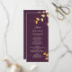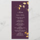 Menu de mariage aux feuilles dorées violettes élég