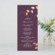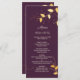 Menu de mariage élégant aux feuilles dorées violettes