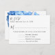 Cartes de réponse au menu du jardin au bord de la mer. Joignez-les aux invitations de mariage et demandez aux invités de choisir un plat principal dans la liste du menu. Incluez également du texte pour ceux qui ne pourront pas assister. Modèles de texte noir sur papier blanc. Le motif floral bleu est au dos. Une étoile de mer blanche est posée parmi les fleurs et donne à cette réponse un thème estival ou balnéaire.