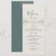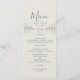 Menu de mariage élégant, bohème, à fleurs sauvages, botanique, vert sauge avec cœur de corde argentée et dentelle florale dorée vintage