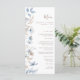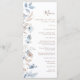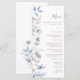 Plongez dans une célébration magnifique de l'amour et de la nature avec notre menu de mariage bohème rustique à l'aquarelle. Ce menu époustouflant et unique infuse une touche de chic bohème avec de magnifiques fleurs sauvages peintes à la main à l'aquarelle dans des teintes douces de bleus pâles et poussiéreux, complétées par des tons terreux. Notre modèle facile à personnaliser vous permet d'insuffler votre voix personnelle pour le rendre vraiment vôtre. Ce beau menu est parfait pour des mariages romantiques et élégants à tout moment de l'année ! (Texte marron foncé.)