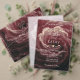 Créez une table spectaculaire et dramatique lors de votre réception de mariage avec cette superbe carte de menu de mariage aux roses rouges romantiques et au bordeaux - avec un fond de tourbillon de rose à l'aquarelle bordeaux profond et des accents ornementaux dorés élégants, parfaitement coordonnés avec votre suite de papeterie de mariage AK Aurora Romantic Red Rose.