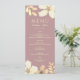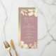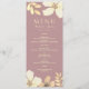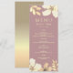 Menu de mariage moderne et élégant avec des fleurs en rose poussiéreuse et des fleurs en or à l'aquarelle.