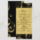 Carte de menu de mariage chic à tourbillon floral noir et or faux. Articles assortis disponibles.