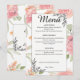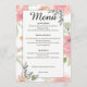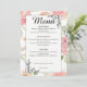 Guidez vos invités à travers votre banquet de mariage avec cette élégante carte de menu floral aquarelle pêche et rose. Parfaitement organisée pour les mariages de jardin de printemps et d'été, elle présente des roses délicates romantiques et des accents d'art de ligne noire sophistiqués. Ce menu personnalisable ajoute une touche botanique intemporelle à votre décor de table de réception et correspond à votre suite de mariage floral.