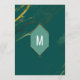 Élégant, chic et moderne, faux marbre doré imprimé et contour de forme de diamant géométrique sur découpure de diamant vert forêt et menthe, cartes de menu de réception de mariage. Ce design classique et sophistiqué est parfait pour la réception de mariage classe, élégante et tendance. Personnalisez avec votre propre menu sur le devant, ainsi que vos noms et dates. Puis personnalisez le dos avec votre initiale de monogramme. Conception d'impression photo personnalisée.