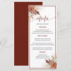 Étonnez vos invités avec notre menu de mariage floral en herbe de Pampas et terre cuite rustique, conçu pour compléter votre thème de mariage. Cette carte de menu présente des fleurs de terre cuite élégantes et des accents d'herbe de Pampas douce, créant une atmosphère chaleureuse et accueillante pour votre réception. Chaque plat est présenté de manière réfléchie avec une police sophistiquée, garantissant lisibilité et style. Parfait pour les mariages rustiques ou automnaux, cette carte de menu sert non seulement de guide pour votre délicieux repas, mais aussi de souvenir charmant pour vos invités.